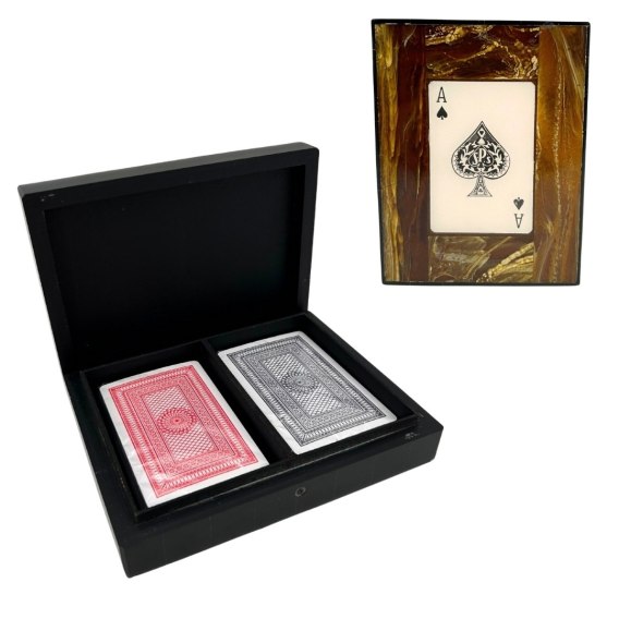 Szukasz stylowego i praktycznego prezentu dla gracza? Zestaw dwóch talii kart w ozdobnym pudełku z żywicy to idealny wybór!