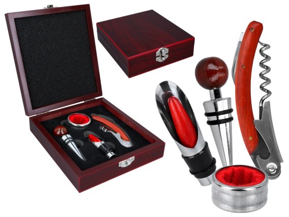 Kpl. do otwierania wina w drewnianym pudełku (4 elementy)