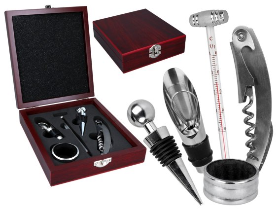Kpl. do otwierania wina w drewnianym pudełku (5 elementy)