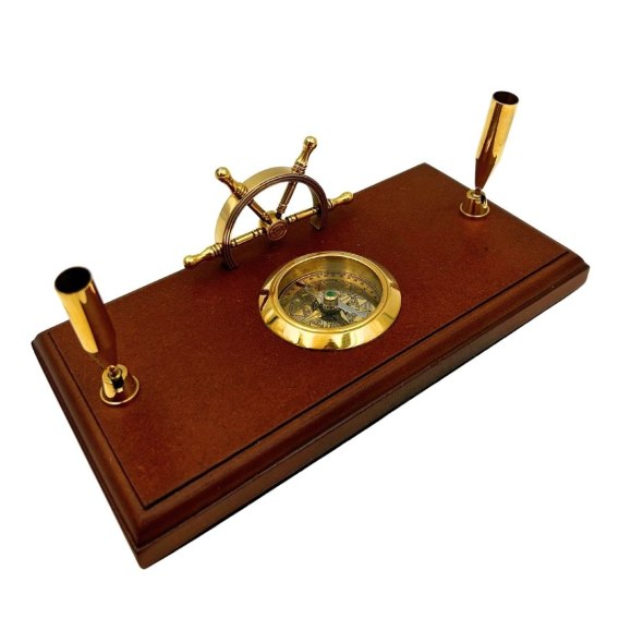 Marynistyczny Zestaw Biurkowy - Koło Sterowe, Kompas, Uchwyty na Długopisy - TT019