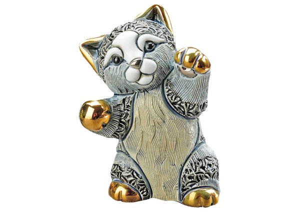 Bajeczna figurka przedstawiająca uroczego kotka. Już dziś możesz stać się dumnym właścicielem cennego zbioru rozpoczynając kolekcjonowanie od tej figurki. Ręczne wykonanie figurki nadaje jej niepowtarzalnego charakteru. Doskonałą jakość podkreślają subtelne złocenia. Niezwykłe dzieło sztuki na pewno zachwyci poszukiwaczy unikatów. Świetny pomysł na wyjątkowy prezent.