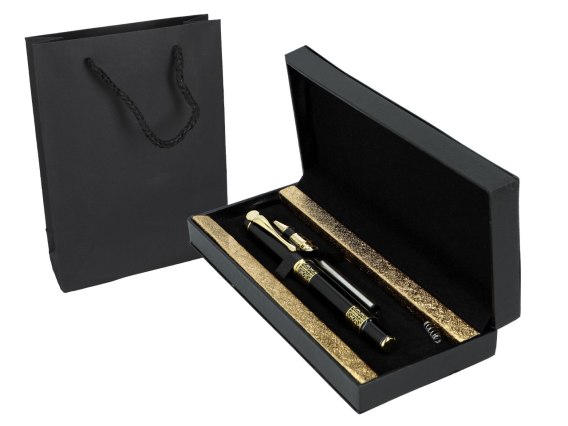 Pióro wieczne i długopis w ozdobnym etui, bordowe.