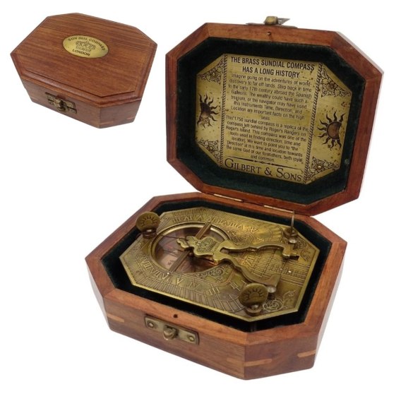 Zegar Słoneczny z Kompasem w Pudełku Drewnianym - Retro Prezent dla Podróżnika - SUN-0106