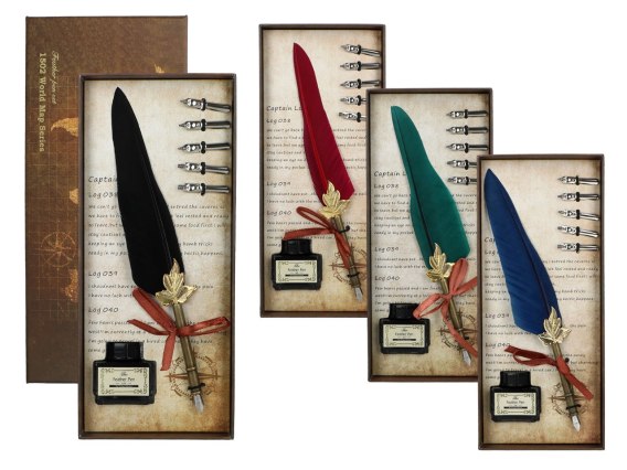 Zestaw piśmienniczy - Pióro z wymiennymi stalówkami i atramentem (mix 4 kolorów)