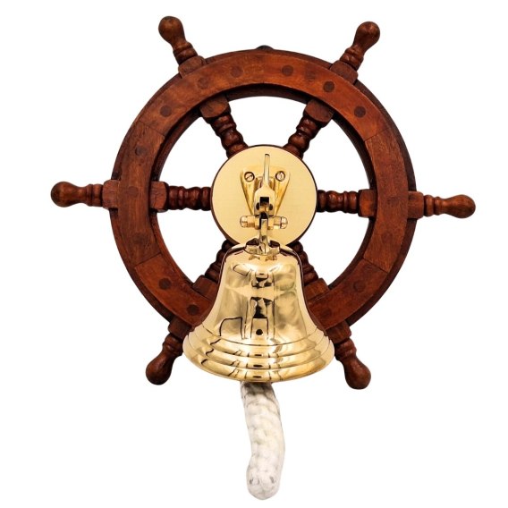 Dzwon okrętowy w kole sterowym to marynistyczny gadżet w całej swojej okazałości i symbolice. Dzwon to serce statku, a koło sterowe to symbolizuje odpowiedzialność za statek i załogę. Jest to zatem świetny pomysł na prezent dla żeglarza i marynarza, który wniesie do pomieszczenia żeglarskiego charakteru.