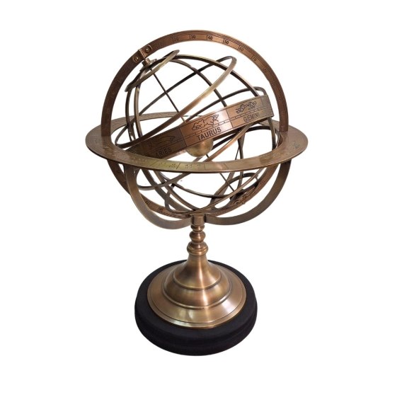Duże Astrolabium Mosiężne to wspaniały prezent dla astronoma i miłośnika nauki. Astrolabium, zwane też sferą armilarną, służyło wielkim uczonym, m.in. Kopernikowi, do wyznaczania współrzędnych ekliptycznych i równikowych. Można było przeprowadzać na nim różne obliczenia matematyczne, jak na przykład wyznaczanie czasu wschodu i zachodu Słońca, długość dnia, wysokość astronomiczną Słońca i gwiazd. Idealne jako prezent, element wystroju gabinetu czy salonu - emanuje elegancją i klasyczną estetyką.