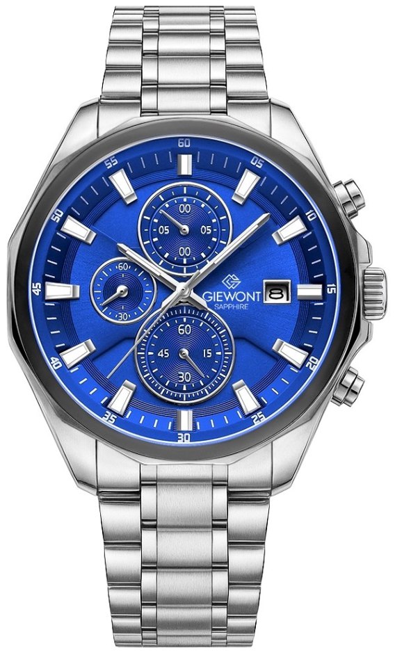 Zegarek Męski Giewont Chronograph Sapphire Srebrno Niebieski GW7290-B3